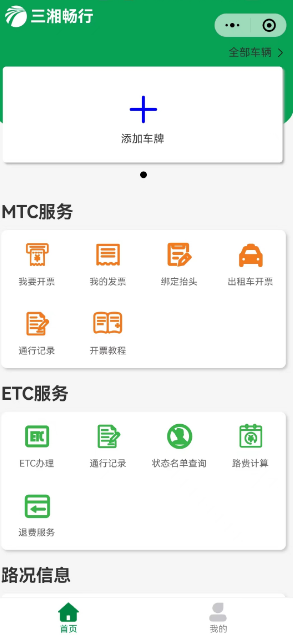 第一步:扫描进入三湘畅行微信小程序,首页点击“我要开票”