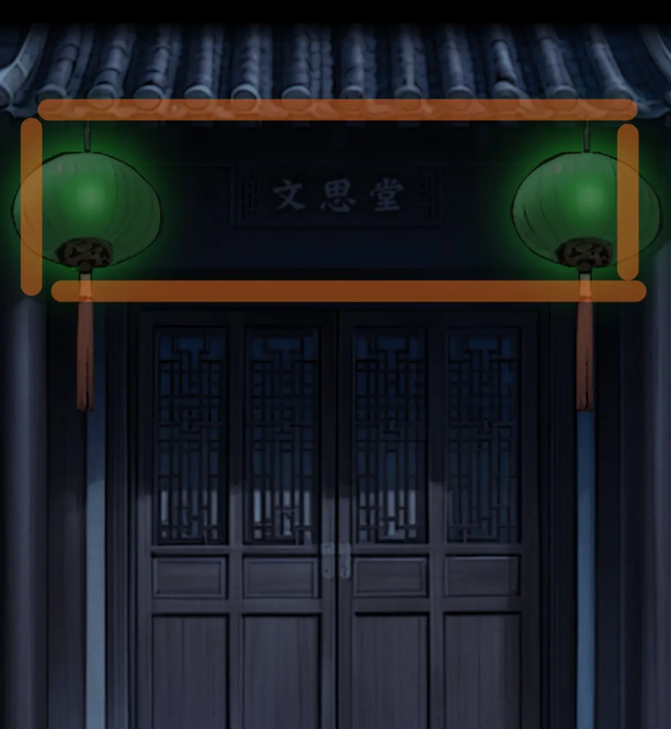 走右面(前面有小高能突脸注意!!!),拿取戏台左右的物品,茶包和胭脂,台子上还有红绿两种颜色的戏服(这里的戏服拿取与文思堂鬼脸的颜色有关,但小编试了好几次应该是纯随机的,直接随缘选择穿吧)