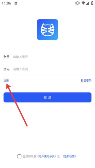 1、在登录界面,点击【注册】,进入账号注册页面。