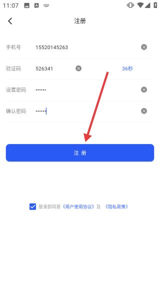 3、勾选同意协议后,点击【注册】按钮,完成账号注册操作。