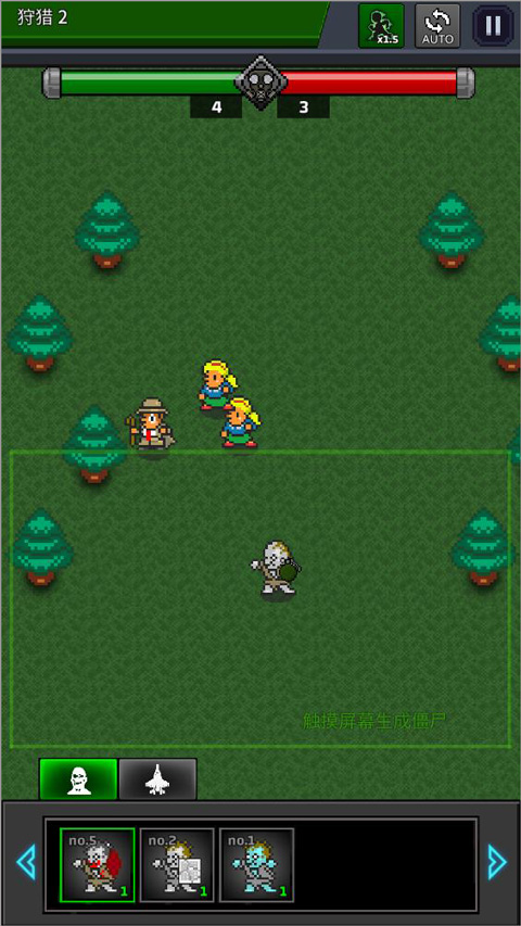 4、点击右下角的狩猎开始冒险,狩猎过程是自动进行的,玩家只需要在绿色方框中点击生成僵尸;