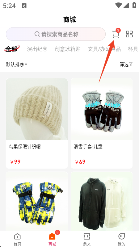 1、打开鸟巢app,点击【商城】,再点击右上角购物车图标