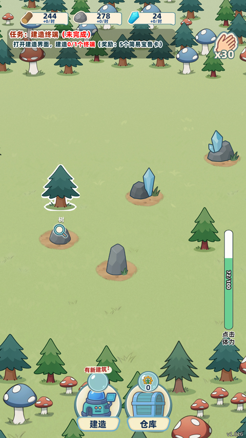 4、捕捉成功后,玩家可通过点击来收集资源,如木材、石头等;