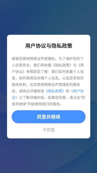 1、打开安装好的软件,点击同意用户协议与隐私政策。