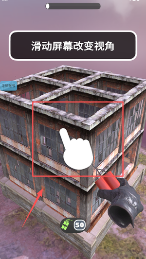 1、进入游戏后选择关卡,观察目标建筑的结构布局和材质特点。