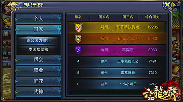 基于顶级的引擎优化方案,让你即使在千人同屏下也能获得流畅的游戏体验。《六龙争霸3D》最大的游戏特色是,无论你身在何处,只要拿起手机就能立即畅享激情!攻城掠地!随时随地,为国一战!