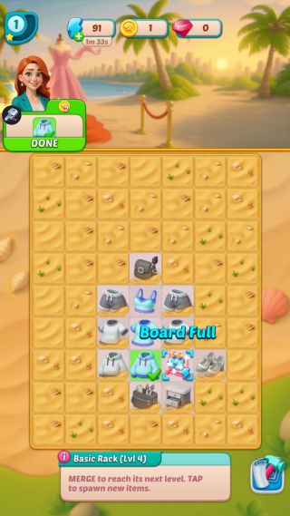 3.合并系统设计精巧而富有逻辑,基础物品经过3-5次合并后达到最终形态,但游戏巧妙之处在于不同物品线之间的交叉合并可能性。一个高级音响系统与一个高级灯光装置合并,可能创造出全新的沉浸式舞池设备;特定食品与特定饮料合并,可能产生特色鸡尾酒或创意料理;