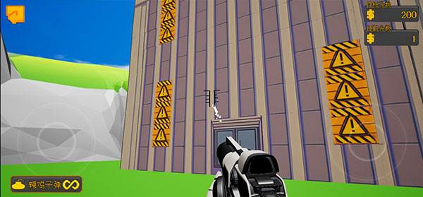 2、进入第一关,也就是教程关,左下角的子弹是没有限制的,左侧按钮控制移动,右侧按钮调整视角。