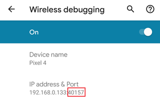 (2)填入"无线调试"中的端口号(此端口号会在每次启用"无线调试"时变化)