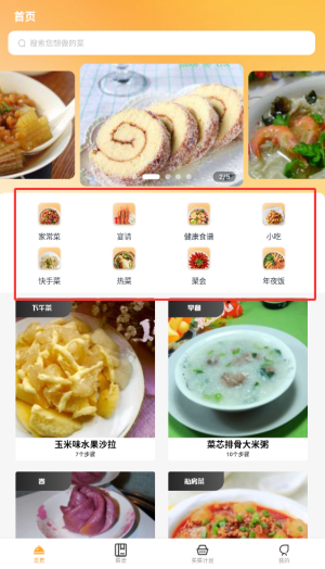 1、打开天天看菜谱软件,进入首页。