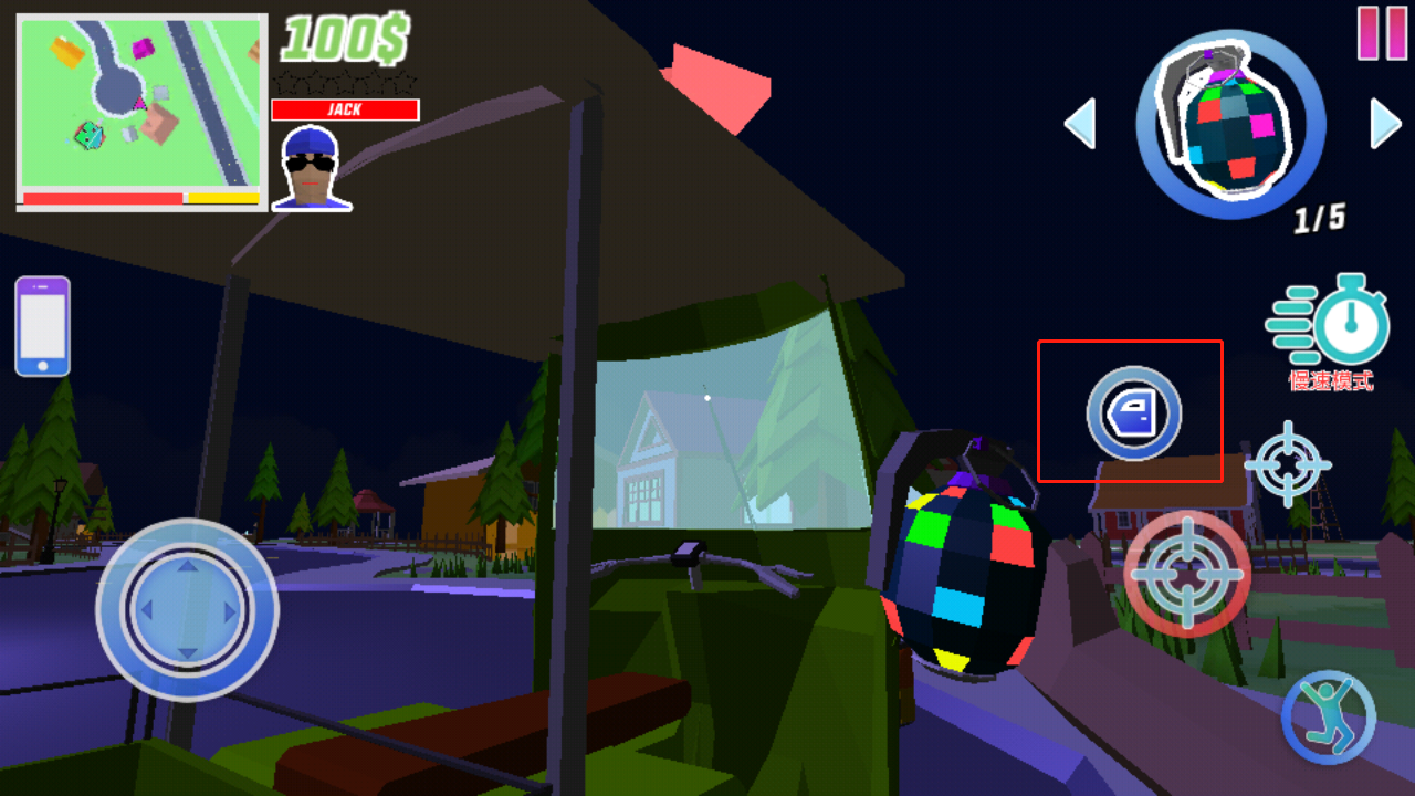 4、进入场景后,我们可以通过左下方的按钮控制角色移动,通过右下角的瞄准、跳跃、时间、转换来进行游戏,也可以选择【点击睡觉】来进行休息,