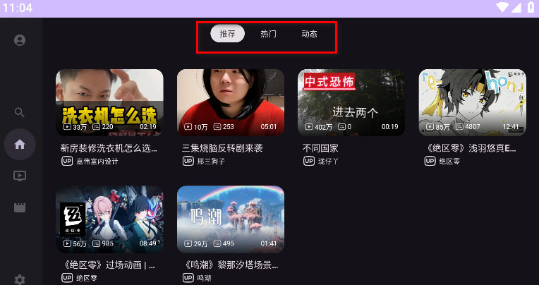 1.请在本站下载安装并打开最新版本的BV,进入主页就会看到三个不同的板块内容,主要有推荐、热门、动态。想看哪个板块的内容就直接点击哪个板块栏目就行。